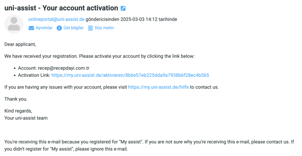 - Uni-Assist Başvuru Aşaması