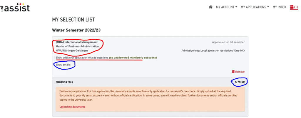 Üniversite başvurunuzu uni-assist çevrimiçi portalında etkinleştirdikten sonra başvuru yapmak internetten alışveriş kadar kolay olduğunu yazmıştık. My Selection List menüsünden de başvurmak istediğiniz programları, ne kadar ücret ödemeniz gerektiğini ve okula özel hangi belgeleri yüklemeniz gerektiğini görebilirsiniz.