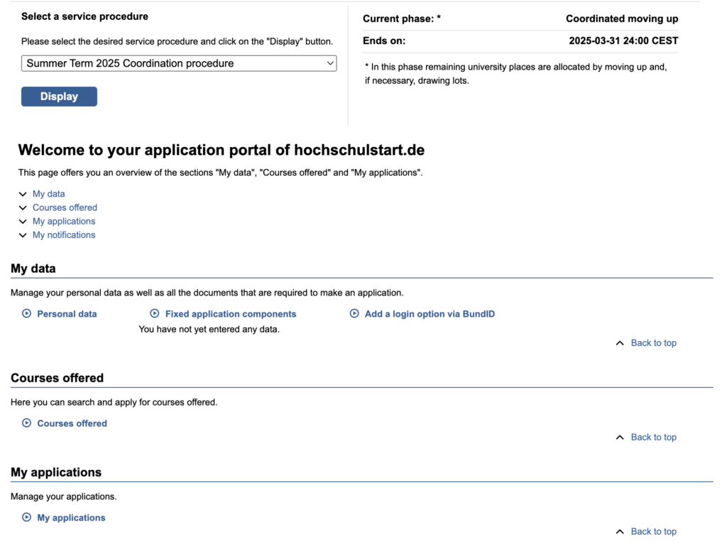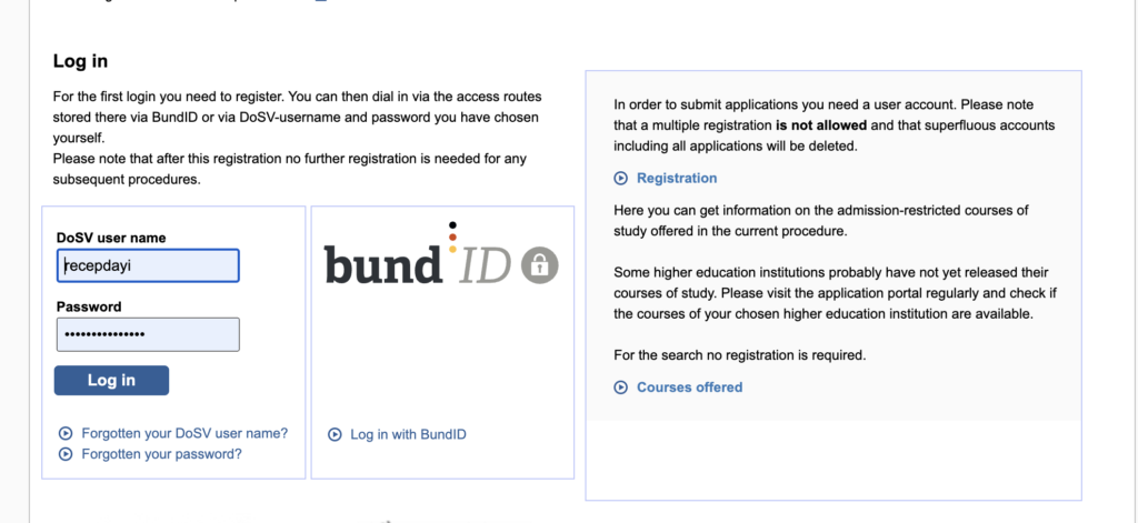 Eğer başvurularınızı bu platformadan yapmak durumunda değilseniz. Yani Almanlarla eşit statüde değilsiniz ve başvuracağınız programlar DOSV programları değilse portalle işiniz şimdilik bitti.
